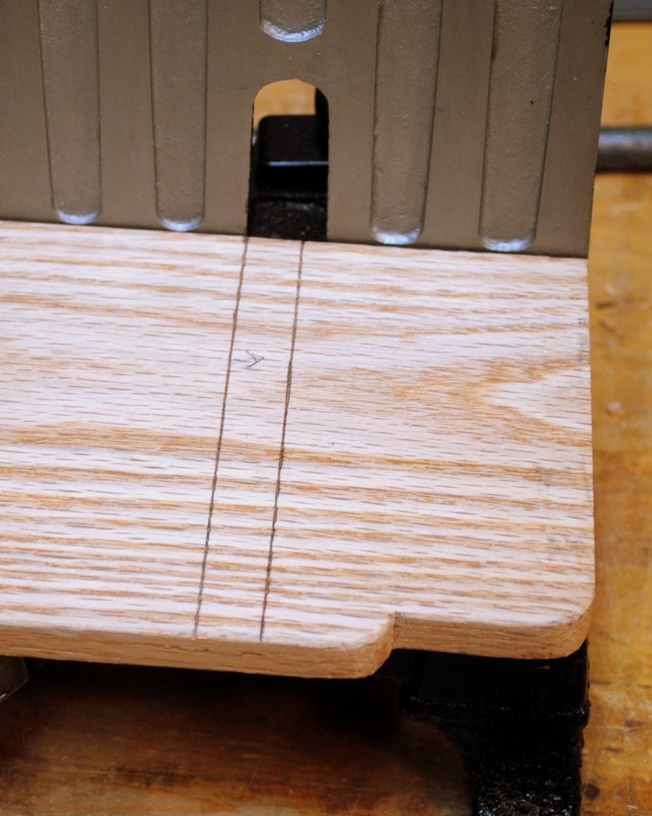 I had a piece of 1/2" thick red oak rolling around the shop and that seemed like it would do the job nicely. I took the old saw bed and used it to get the proper width.
