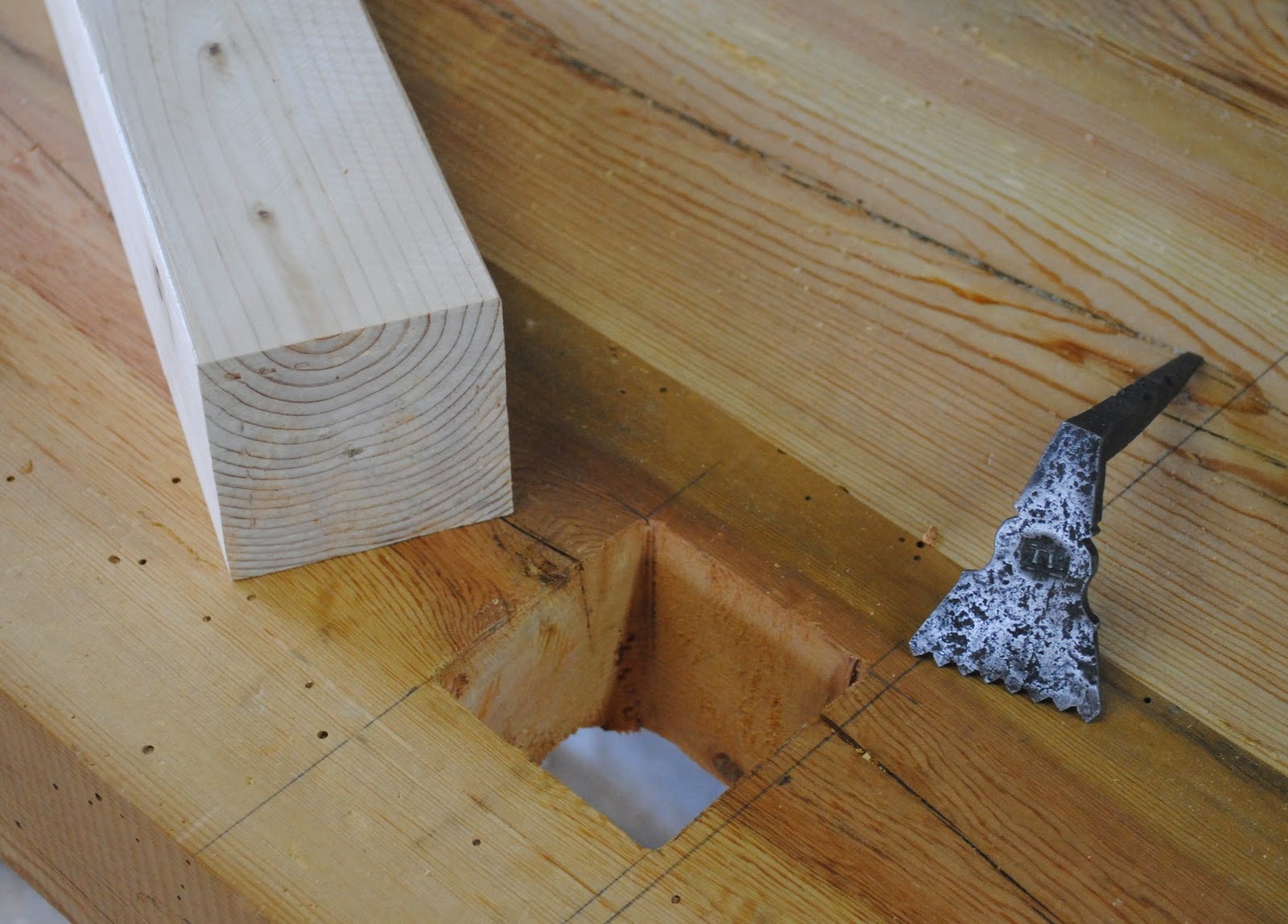 I started by making a 3"x 3" Square hole in the bench top and milling down a blank of clear white pine to fit snugly. I know what you're thinking, isn't that supposed to be made from hardwood? I guess the answer is yes but there are a lot of "suppose to do" things I just ignore. I think it relates to issues with authority in general.